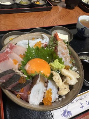 今日は海鮮丼を食べようと南予か島で悩みました。